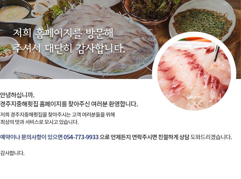 저희 횟집을 찾아주시는 고객 여러분들을 위해 최상의 맛과 서비스로 모시고 있습니다.