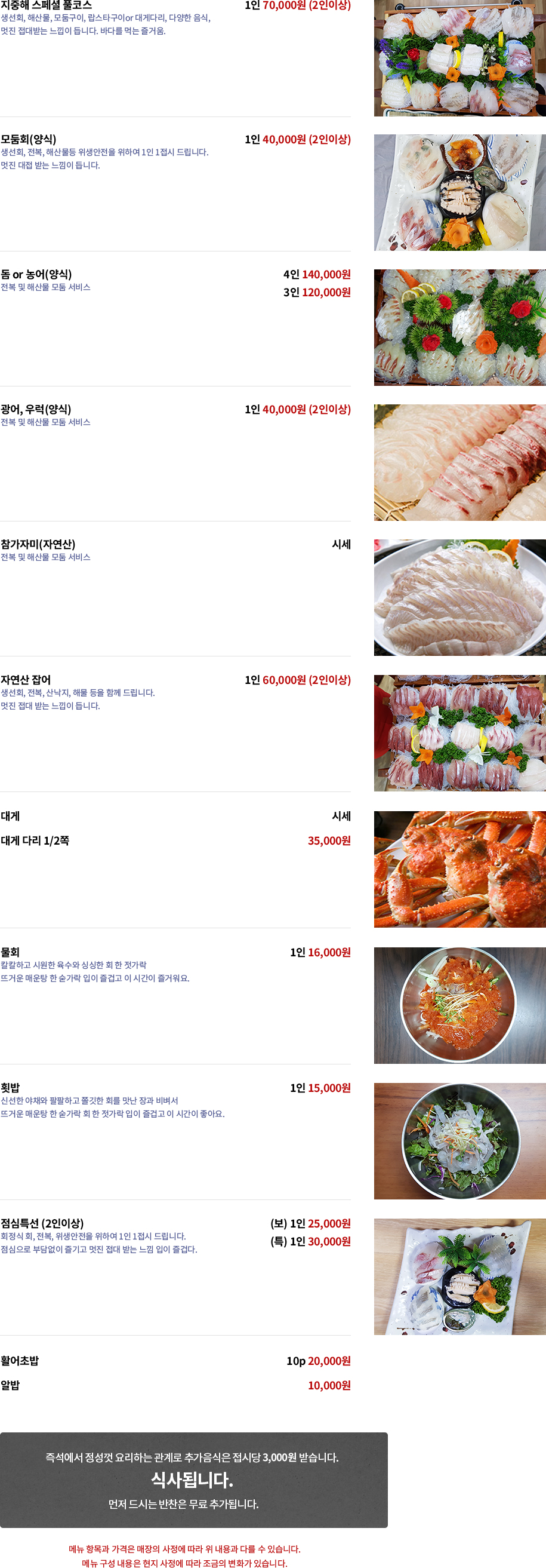 저희 횟집을 찾아주시는 고객 여러분들을 위해 최상의 맛과 서비스로 모시고 있습니다.